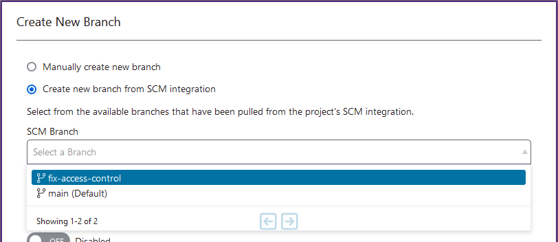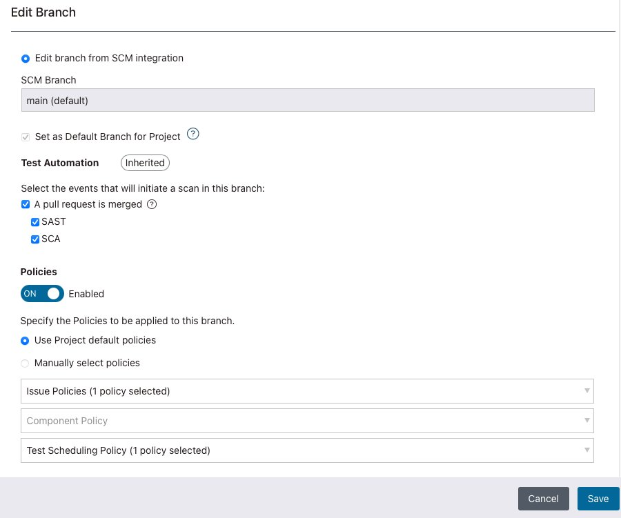 Follow these steps to modify a branch from a SCM integration.