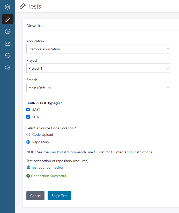 Follow these steps to run SAST and/or SCA tests from the Polaris user interface: